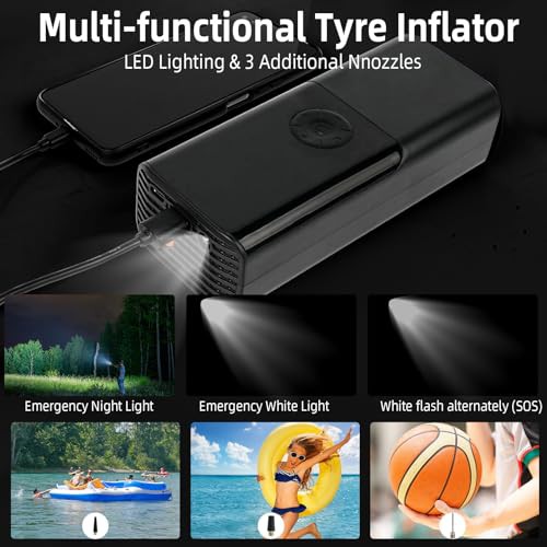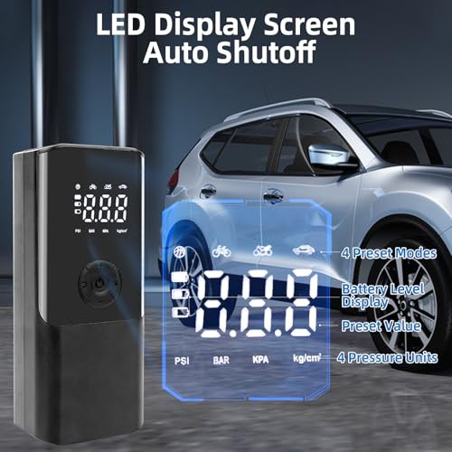 ['【4 Adjustable Modes & Fast Inflation】Our tyre pressure pump has 4 different modes that can be adjusted to meet the inflation needs of cars/bicycles/balls/motorcycles, the default air pressure will follow automatically after selection. and has four pressure units of PSI/ BAR/ KPA/ Kg/cm² can be adjusted freely. Fast Inflation, can inflate a 195/55/R15 car tyre from 0PSI to 35PSI in 7 minute, the maximum pressure is 150PSI.', '【4 Adjustable Modes & Fast Inflation】Our tyre pressure pump has 4 different modes that can be adjusted to meet the inflation needs of cars/bicycles/balls/motorcycles, the default air pressure will follow automatically after selection. and has four pressure units of PSI/ BAR/ KPA/ Kg/cm² can be adjusted freely. Fast Inflation, can inflate a 195/55/R15 car tyre from 0PSI to 35PSI in 7 minute, the maximum pressure is 150PSI.', '【4 Adjustable Modes & Fast Inflation】Our tyre pressure pump has 4 different modes that can be adjusted to meet the inflation needs of cars/bicycles/balls/motorcycles, the default air pressure will follow automatically after selection. and has four pressure units of PSI/ BAR/ KPA/ Kg/cm² can be adjusted freely. Fast Inflation, can inflate a 195/55/R15 car tyre from 0PSI to 35PSI in 7 minute, the maximum pressure is 150PSI.', '【4 Adjustable Modes & Fast Inflation】Our tyre pressure pump has 4 different modes that can be adjusted to meet the inflation needs of cars/bicycles/balls/motorcycles, the default air pressure will follow automatically after selection. and has four pressure units of PSI/ BAR/ KPA/ Kg/cm² can be adjusted freely. Fast Inflation, can inflate a 195/55/R15 car tyre from 0PSI to 35PSI in 7 minute, the maximum pressure is 150PSI.', '【4 Adjustable Modes & Fast Inflation】Our tyre pressure pump has 4 different modes that can be adjusted to meet the inflation needs of cars/bicycles/balls/motorcycles, the default air pressure will follow automatically after selection. and has four pressure units of PSI/ BAR/ KPA/ Kg/cm² can be adjusted freely. Fast Inflation, can inflate a 195/55/R15 car tyre from 0PSI to 35PSI in 7 minute, the maximum pressure is 150PSI.']