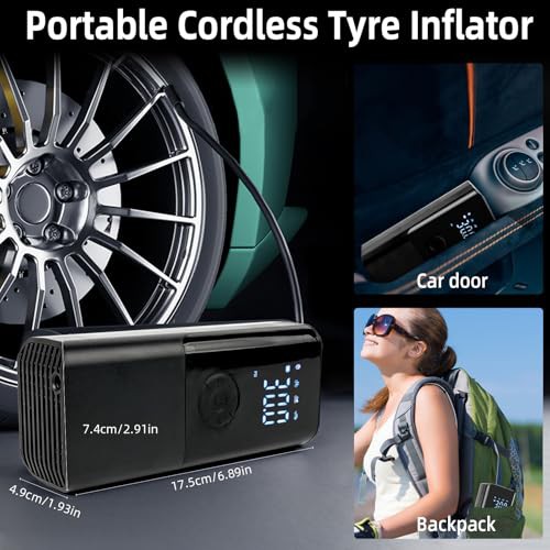Tyre Inflator, Portable Car Tyre Inflator Air Compressor, 150PSI USB Rechargeable Car Tyre Pump Digital Cordless Tyre Inflator with LED Light for Car Motorcycle Ball