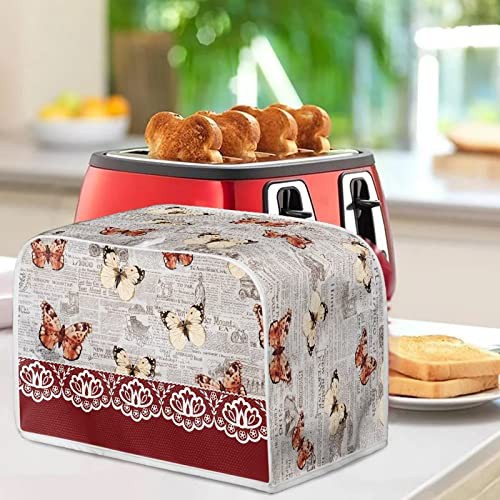 STUOARTE Vintage Newspaper Butterfly Toaster Cover 2 Slice, Small Appliance Cover for Kitchen Dustproof Toaster Cover - Keep Toaster Free From Dust And Fingerprint