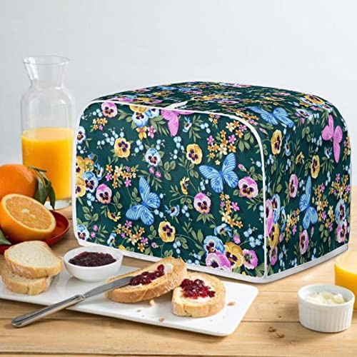 STUOARTE 4 Slice Slot Toaster Cover Flowers Butterfly Print Bread Toaster Cover Bakeware Protector Bread Toaster Oven Cloth Cover Dust Protection Washable Kitchen Appliance Cover