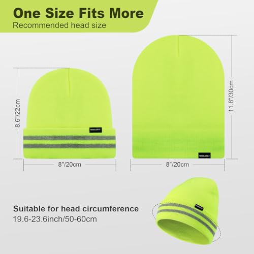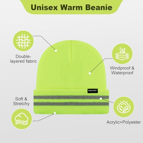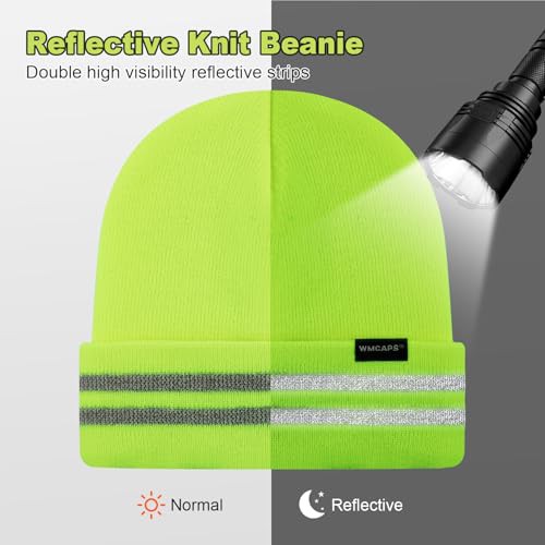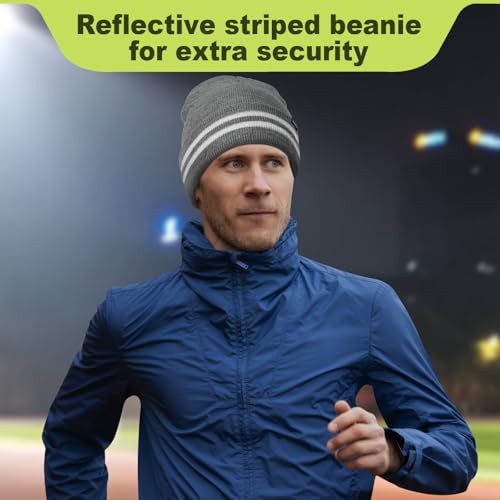 Wmcaps Unisex Reflective Beanie, High Visibility Mens Beanie with Reflective Stripes, Knit Winter Hats for Men and Women, Classic Cap for Outdoor Activities Work Sports, Grey