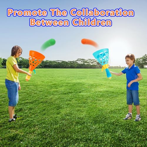 Pop and Catch Ball Game with 10 Balls and 2 Catch Launcher Baskets - Outdoor Indoor Game Activities, Basket Stuffers Gifts Beach Sport Summer Beach Toys for Kids Ages 3 4 5 6 7 8 10 12+