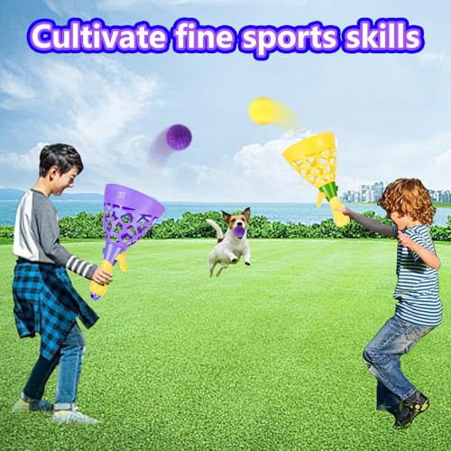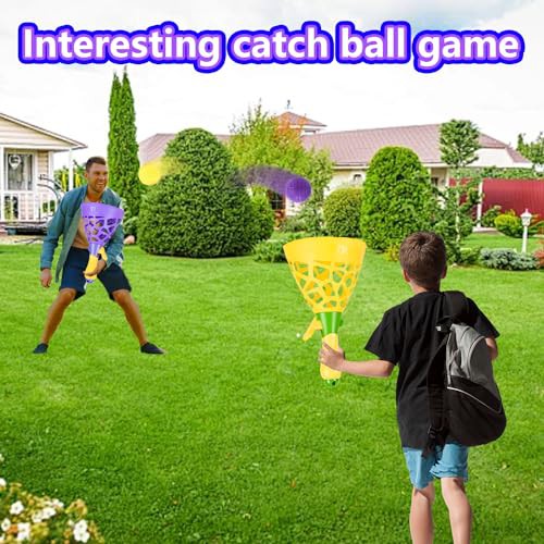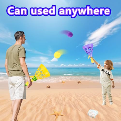 Pop and Catch Ball Game with 10 Balls and 2 Catch Launcher Baskets - Outdoor Indoor Game Activities, Basket Stuffers Gifts Beach Sport Summer Beach Toys for Kids Ages 3 4 5 6 7 8 10 12+