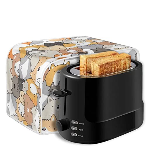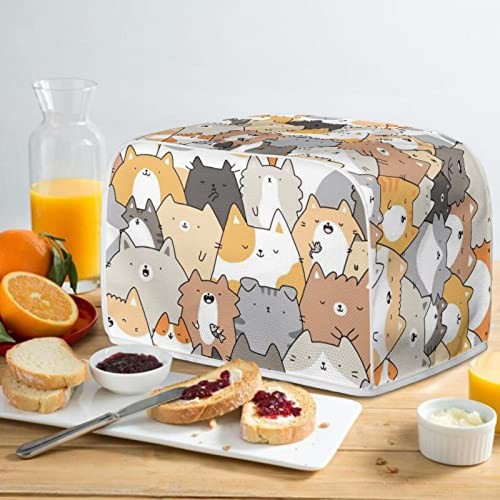 STUOARTE Cartoon Kittens Toaster Dust Cover Bread Maker Machine Cover with Top Handle, 2 Slice Toaster Appliance Dust-proof Cover Bakeware Protector Kitchen Home Decorative