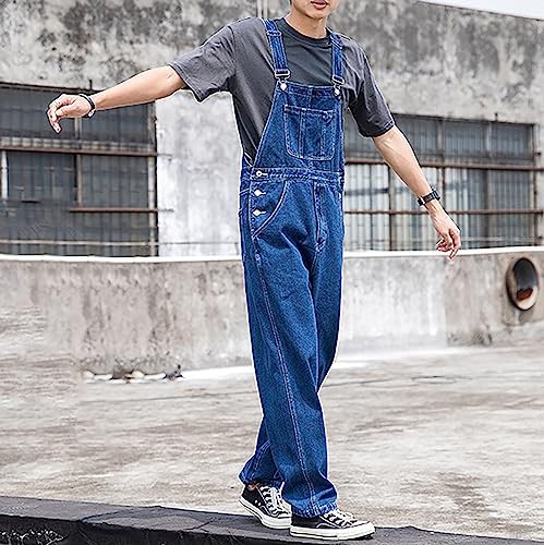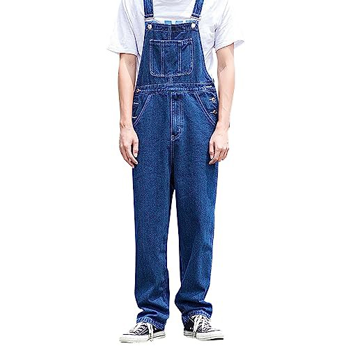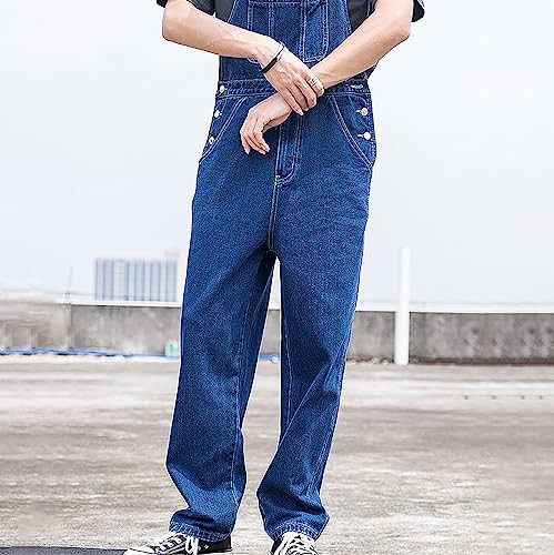 Denim Dungarees For Men, Adult Onesies For Men Mens Denim Light Blue Wash Dungarees Mens Overalls Men Fashionable Dungarees Outdoor Dungarees Retro One-Piece Trouser Loose Straight Denim Dungarees