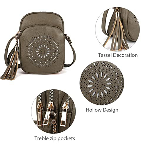 GLITZALL Cross Body Bag, Small Shoulder Bags with Multi Pocket, Tassel Satchel Purse Hollow out, Ladies Phone Bags Fashion