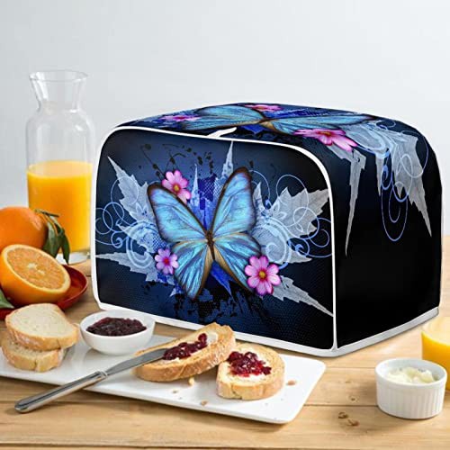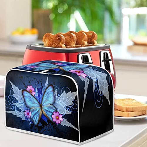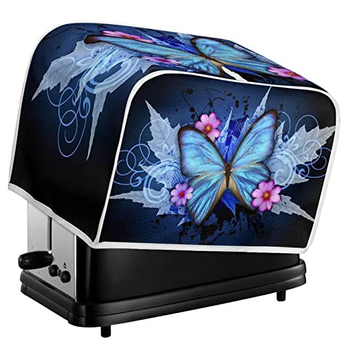 STUOARTE Toaster Cover 4 Slice,Butterfly Flowr Bread Maker Cover Kitchen Appliance Bread Maker Cover,Microwave Oven Dust Cover Bread Machine Accessories Cover Fingerprint Protection, Blue