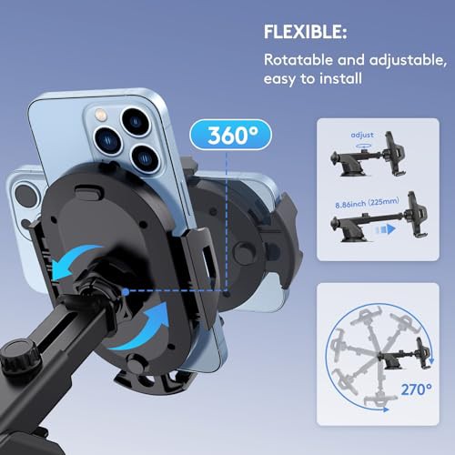 LOLBIU Car Phone Holder[Military-Grade Suction] 4 in 1 Mobile Phone Holder for Car 360°Rotation Dashboard Windscreen Air Vent Phone mount for Car Fit All iPhone & Smartphones