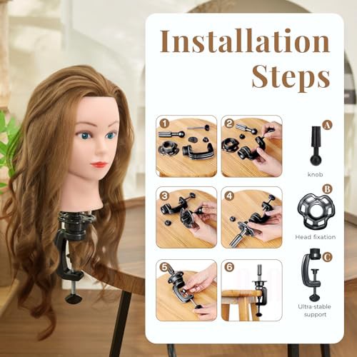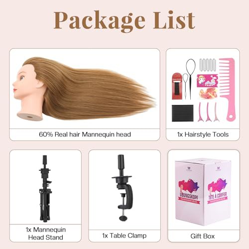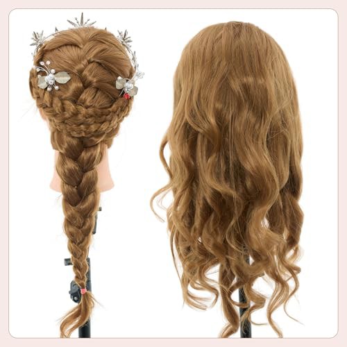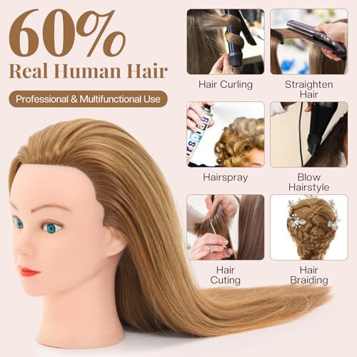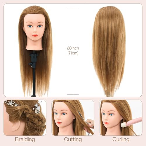 Neverland 71cm Hairdressing Head with Training Head Stand, 60% Real Hair Doll Head for Hairdressing, Training Heads for Hairdressers Training Head with Table Clamp, Diy Hair Braiding Set