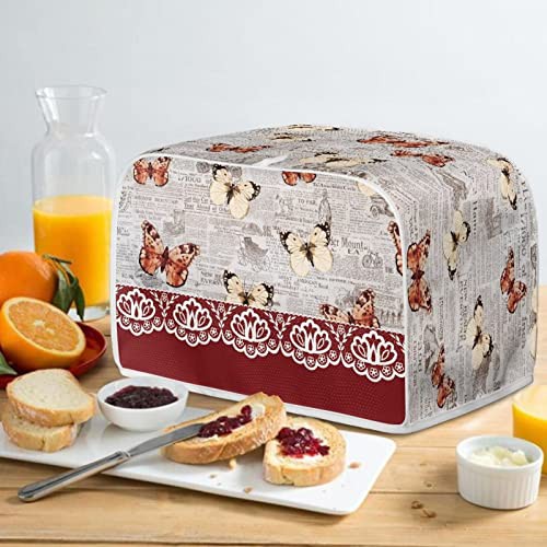 STUOARTE Vintage Newspaper Butterfly Toaster Cover 4 Slice, Small Appliance Cover for Kitchen Dustproof Toaster Cover - Keep Toaster Free From Dust And Fingerprint