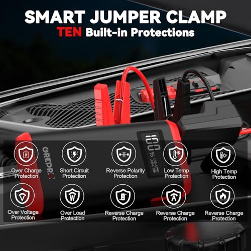 ['【Powerful 3000A Car Jump Starter】GREPRO portable jump starter is able to jump start most kinds of 12V vehicles (up to 9.0L Petrol / 7.0L Diesel) up to more times in a full-charge, works for passenger cars, motorcycle,lawn mower, trailer, snowmobiles etc.Even if the voltage or battery of the car battery is too low, pressing the "BOOST" button will force your car to restart. Every driver must to have a car battery jump starter in case of emergency situation', '【Powerful 3000A Car Jump Starter】GREPRO portable jump starter is able to jump start most kinds of 12V vehicles (up to 9.0L Petrol / 7.0L Diesel) up to more times in a full-charge, works for passenger cars, motorcycle,lawn mower, trailer, snowmobiles etc.Even if the voltage or battery of the car battery is too low, pressing the "BOOST" button will force your car to restart. Every driver must to have a car battery jump starter in case of emergency situation', '【Powerful 3000A Car Jump Starter】GREPRO portable jump starter is able to jump start most kinds of 12V vehicles (up to 9.0L Petrol / 7.0L Diesel) up to more times in a full-charge, works for passenger cars, motorcycle,lawn mower, trailer, snowmobiles etc.Even if the voltage or battery of the car battery is too low, pressing the "BOOST" button will force your car to restart. Every driver must to have a car battery jump starter in case of emergency situation', '【Powerful 3000A Car Jump Starter】GREPRO portable jump starter is able to jump start most kinds of 12V vehicles (up to 9.0L Petrol / 7.0L Diesel) up to more times in a full-charge, works for passenger cars, motorcycle,lawn mower, trailer, snowmobiles etc.Even if the voltage or battery of the car battery is too low, pressing the "BOOST" button will force your car to restart. Every driver must to have a car battery jump starter in case of emergency situation', '【Powerful 3000A Car Jump Starter】GREPRO portable jump starter is able to jump start most kinds of 12V vehicles (up to 9.0L Petrol / 7.0L Diesel) up to more times in a full-charge, works for passenger cars, motorcycle,lawn mower, trailer, snowmobiles etc.Even if the voltage or battery of the car battery is too low, pressing the "BOOST" button will force your car to restart. Every driver must to have a car battery jump starter in case of emergency situation']