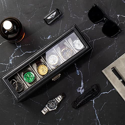 ProCase Watch Box for Men, 6 Slot Watch Display Case with Drawer, Mens Watch Case With Glass Lid, 2-Layer Jewelry and Watch Storage Watch Holder Organizer for Men Women -6 Slot, Black