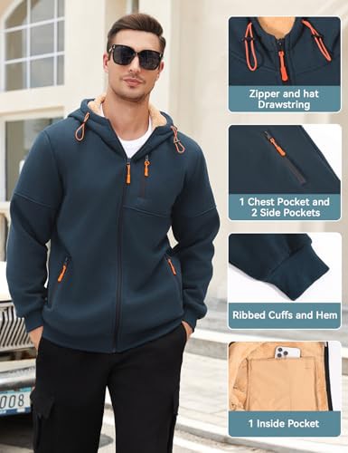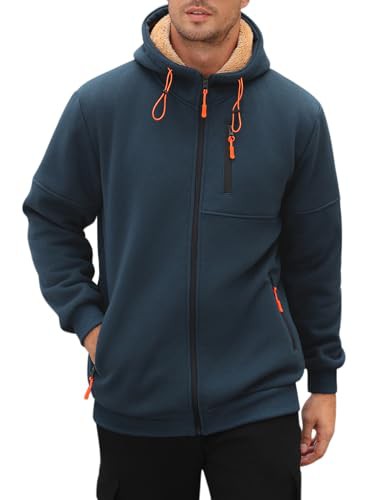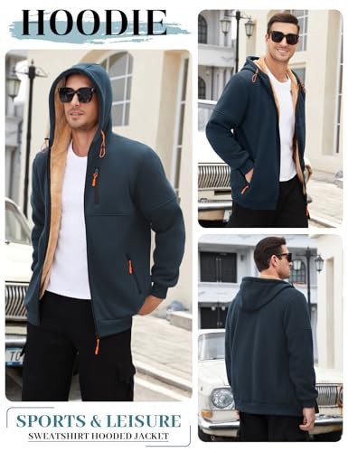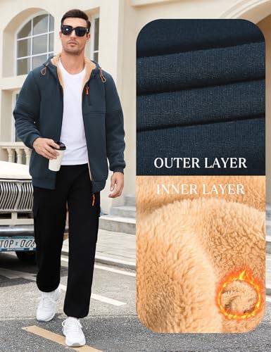 Vijamiy Mens Hoodie Fleece Lined Hoodies Zip Up Mens Fleece Jackets Full Zip Thermal Long Sleeve Thick Warm Coats Autumn Winter Hooded Drawstring Sweatshirt with Pockets