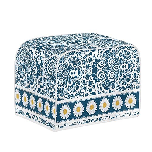 STUOARTE Boho Daisy Print Toaster Cover for 2 Slice Toaster Flower Fashion Small Appliance Cover Kitchen Decorative Dust & Fingerprint Protection, Machine Washable, Blue