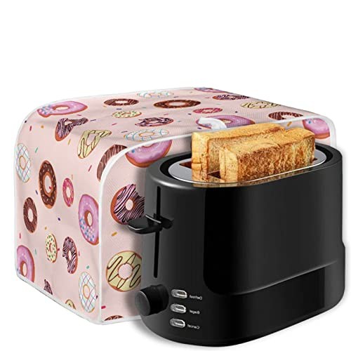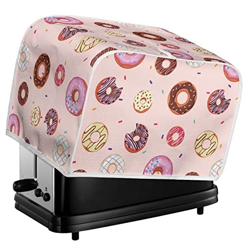 STUOARTE Universal Size 2 Slice Toaster Cover, Dount Print Cute Toaster Appliance Dust-proof Cover For Kitchen Small Appliance Dust Cover and Fingerprint Protection, Machine Washable, Pink