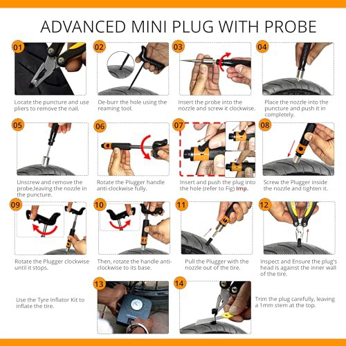 GRAND PITSTOP 21 Pcs Tubeless Tire Plugger Repair Kit with Multi-funcional Plier for Punctures and Flats on Cars, Motorcycles, ATV, RV, SUV, Trailer, Trucks & Tractors