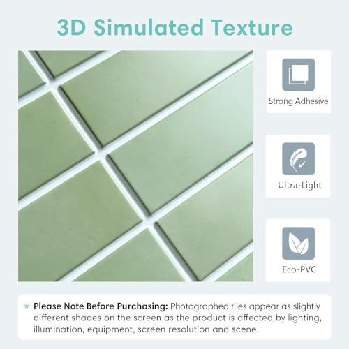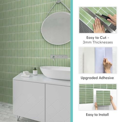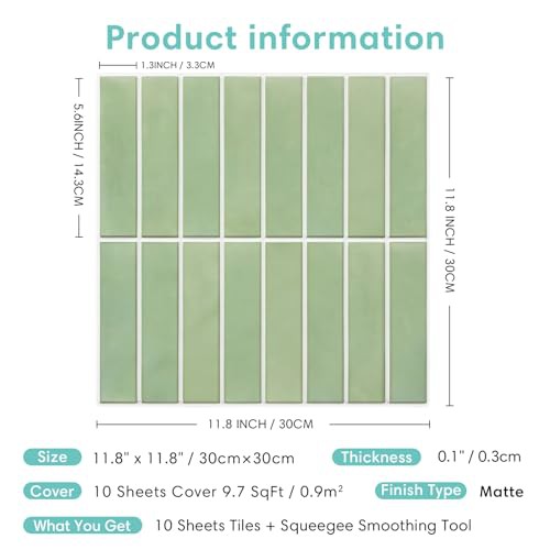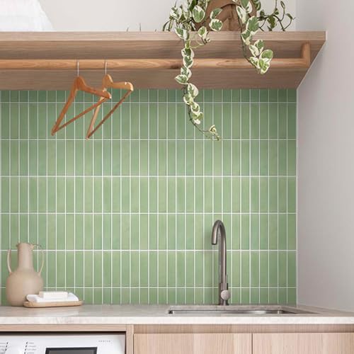 Commomy 10 Pcs Sage Green 3D Self Adhesive Wall Tiles,11'8 x 11'8 Matte UrltraLight PVC Vertical Peel and Stick on Tiles for Kitchen Backsplash, Bathroom, Living Room, Bedroom, RV
