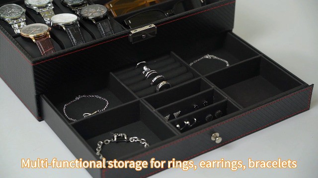 ['【? 2 Layers Multi-Functional Watch Box】The multifunctional watch storage box is divided into two layers. The top layer can accommodate 6 watches and 3 pairs of sunglasses. The bottom layer is a drawer-style jewellery storage tray that can hold jewellery, cufflinks, spare chains, rings, earrings, bracelets, and necklaces. There are also specially designed compartments for earrings and rings, allowing you to neatly organise all your various accessories.', '【? 2 Layers Multi-Functional Watch Box】The multifunctional watch storage box is divided into two layers. The top layer can accommodate 6 watches and 3 pairs of sunglasses. The bottom layer is a drawer-style jewellery storage tray that can hold jewellery, cufflinks, spare chains, rings, earrings, bracelets, and necklaces. There are also specially designed compartments for earrings and rings, allowing you to neatly organise all your various accessories.', '【? 2 Layers Multi-Functional Watch Box】The multifunctional watch storage box is divided into two layers. The top layer can accommodate 6 watches and 3 pairs of sunglasses. The bottom layer is a drawer-style jewellery storage tray that can hold jewellery, cufflinks, spare chains, rings, earrings, bracelets, and necklaces. There are also specially designed compartments for earrings and rings, allowing you to neatly organise all your various accessories.', '【? 2 Layers Multi-Functional Watch Box】The multifunctional watch storage box is divided into two layers. The top layer can accommodate 6 watches and 3 pairs of sunglasses. The bottom layer is a drawer-style jewellery storage tray that can hold jewellery, cufflinks, spare chains, rings, earrings, bracelets, and necklaces. There are also specially designed compartments for earrings and rings, allowing you to neatly organise all your various accessories.', '【? 2 Layers Multi-Functional Watch Box】The multifunctional watch storage box is divided into two layers. The top layer can accommodate 6 watches and 3 pairs of sunglasses. The bottom layer is a drawer-style jewellery storage tray that can hold jewellery, cufflinks, spare chains, rings, earrings, bracelets, and necklaces. There are also specially designed compartments for earrings and rings, allowing you to neatly organise all your various accessories.']
