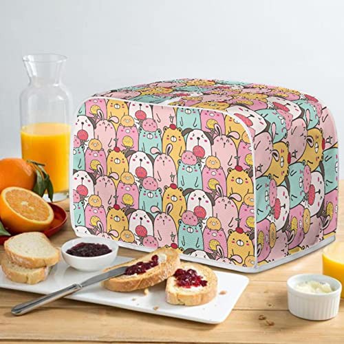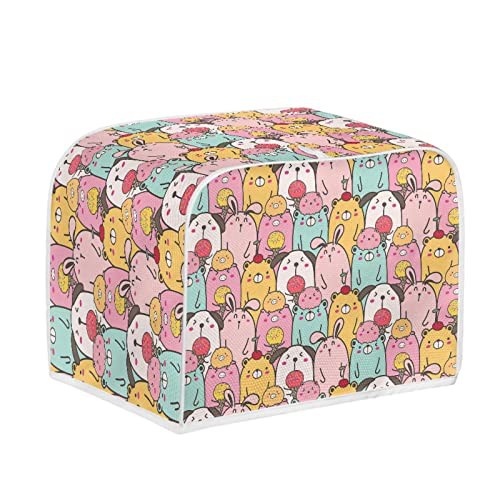 STUOARTE Cartoon Animals Toaster Cover Wide Slice Bread Machine Cover Washable Stain Resistant Cute 4 Slice Toaster Cover Kitchen Appliance Covers Bread Meker Cover