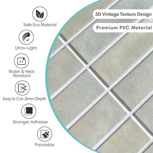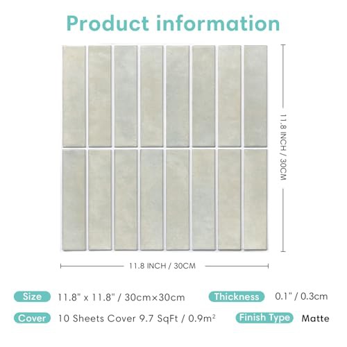 Commomy 10 Pcs 3D Self Adhesive Wall Tiles,11'8 x 11'8 Matte UrltraLight PVC Vertical Peel and Stick on Tiles for Kitchen Backsplash, Bathroom, Living Room, Bedroom, RV