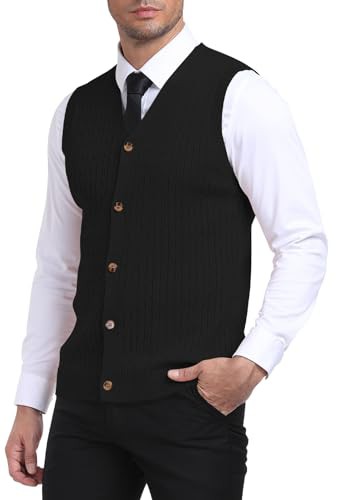 PCEAIIH Men's Gilets Knit Sweater Vest V Neck Sleeveless Cardigan Top with Buttons Classic Business Gentleman Knitwear