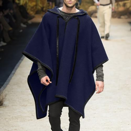 Fowjknww Thickened Cape Men's Wool Poncho Fashionable Trendings Hoodie Winter Blanket Poncho Men Portable Warm Leisure Daily Travel Clothing Cowboy Hippie Jacket with Hood