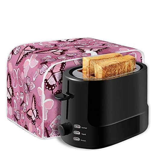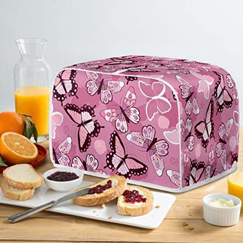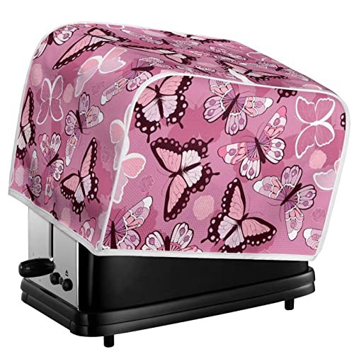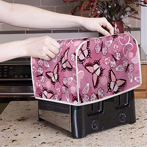 STUOARTE Butterfly Print Toaster Cover 2 Slice Bread Toaster Cover Bakeware Protector Bread Machine Dustproof Protection Cover Kitchen Appliance Cover Washable, Pink