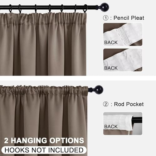 DWCN Blackout Curtains for Bedroom Room Divider Curtains Thermal Insulated Room Darkening Pencil Pleat Window Curtains for Living Room 90 x 90 inch Length, Khaki, 2 Panels
