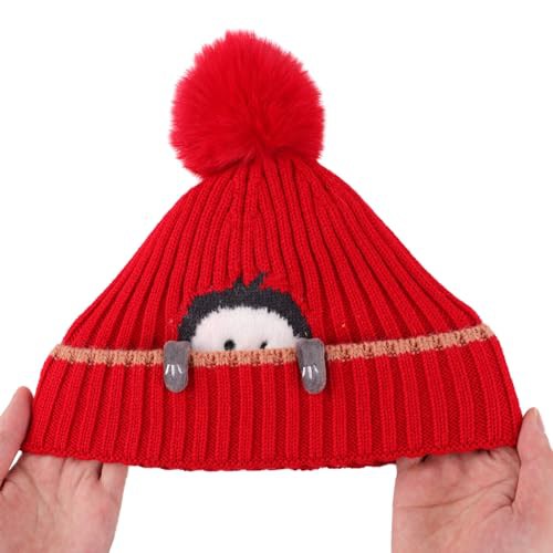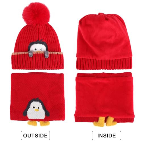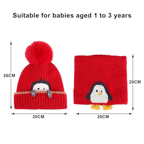 MASOCIO Toddler Hat Scarf Set Winter Boys Girls Baby Kids Bobble Beanie Thermal Knitted Wooly 2 Warm Fleece Neck Warmer 6 9 12 18 Months Snood Caps Age 1-3 Years Red