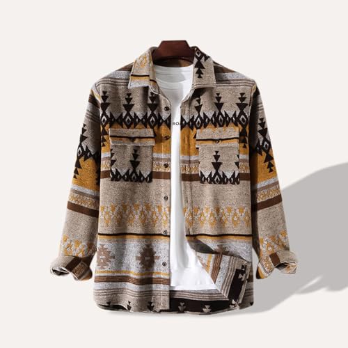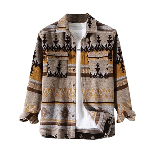 Foweknow Men's Ethnic Aztec Print Flannel Shirt Vintage Versatile Fashion Casual Jacket Simplicity Comfortable Trend Sweater Casual Personality