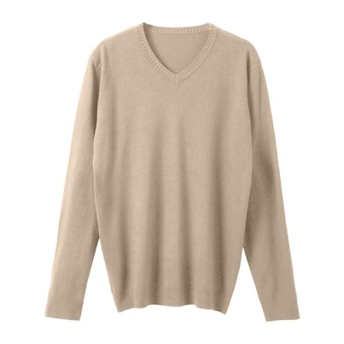 Foweknow Men's Thin Slim Fit Sweater Fashionable Simplicity Knitted Jumper Versatile Fine Knit Autumn Winter Pullover V Neck Plain Regular Fit Long Sleeve Shirt