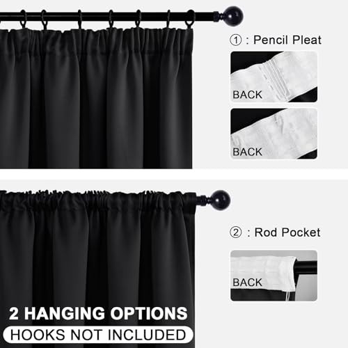 DWCN Blackout Curtains for Bedroom Pencil Pleat Curtains Thermal Insulated Curtain for Home Decoration Room Darkening Drapery Curtain for Halloween Decor Window Treatment 55x79 Black, 2 Panels