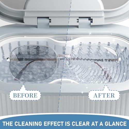 Ultrasonic Cleaner with Degas Mode, 45KHz Jewellery Cleaner 5 Timers 3 Powers for Silver, Gold, Diamond Rings, Earrings, Necklaces, 550ML Sonic Cleaner for Retainers, Glasses, Dentures, Watch Bands