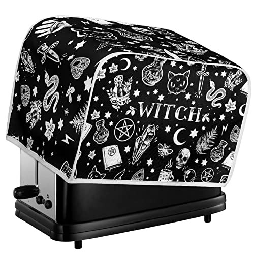STUOARTE Skull Witch Print Toaster Dust Cover 2 Slice Bread Toaster Cover Small Appliance Dustproof Cover Bag Bread Maker Machine Protective Cover Washable Universal Size, Black