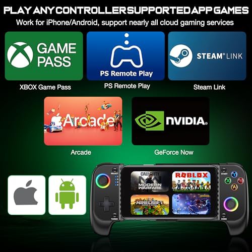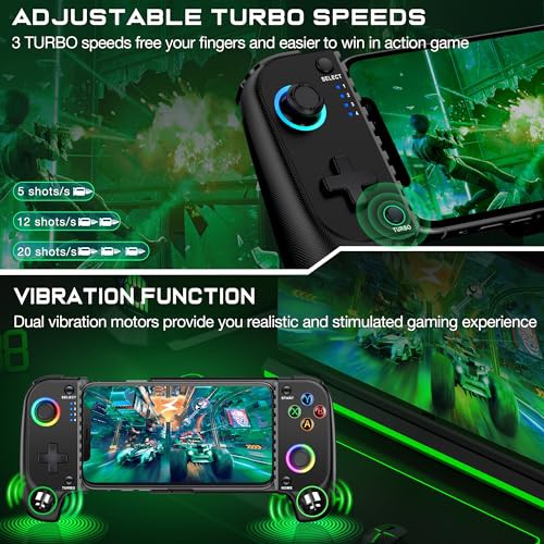 HASACOOL Mobile Gaming Controller for Android/iPhone,RGB Light Hall Effect Joystick Wireless Phone Controller-PS Remote Play/Xbox Cloud/Steam Link/GeForce Now/MFi Apple Arcade-Call of Duty,Roblox