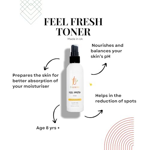 Cezons Feel Fresh Toner - 100ml - Skincare for Kids, Tweens & Teenagers - Green Tea, Vitamin C & Aloe Vera Infused - Gentle, Spray-On, Leave-On Formula - Long Lasting, Great for Travel.