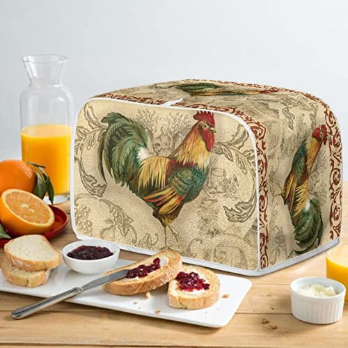STUOARTE 2 Slice Toaster Appliance Cover Vintage Rooster Print Toaster Cover Washable Dustproof Microwave Oven Dust Cover Bread Maker Cover Kitchen Decorative Protector