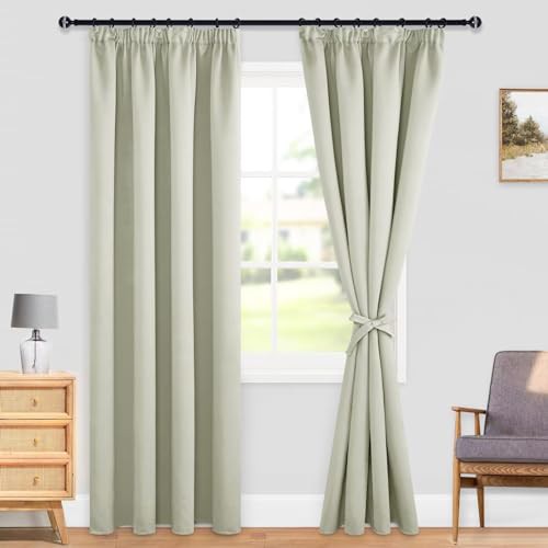 DWCN Blackout Curtains for Bedroom Thermal Insulated Room Darkening Pencil Pleat Window Curtains for Living Room 46 x 90 inch Length, Light Beige, 2 Panels