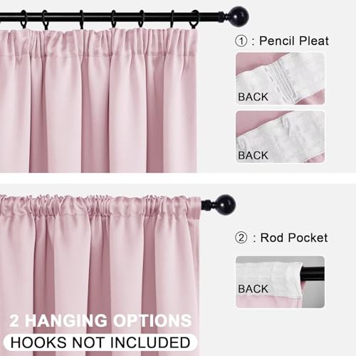 DWCN Blackout Curtains for Bedroom Thermal Insulated Curtain with Tiebacks Pencil Pleat Curtains for Living Room 46 x 54 inch Length, Pink, 2 Panels