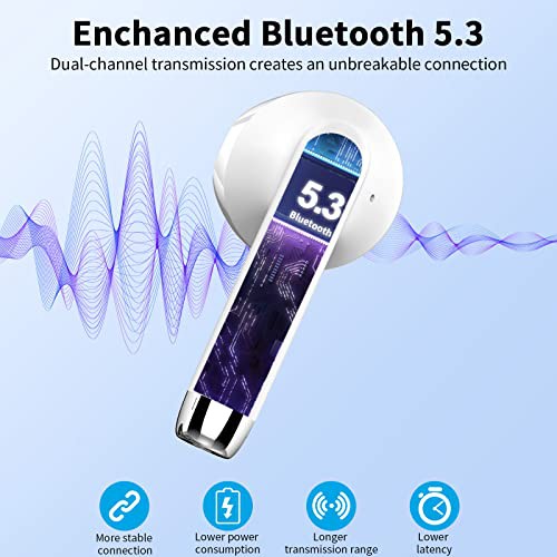 Wireless Earbuds, Bluetooth 5.3 Headphones NEW Wireless Headphones with 4 ENC Mic, 56H Bluetooth Earphones in Ear Noise Cancelling Deep Bass, Mini Ear Buds Bluetooth Earbuds IP7 Waterproof LED Display