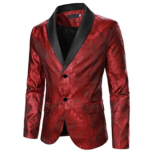 Foweknow Men's Sequin Suit Jacket Floral Pattern Slim Fit Blazer Wedding Tuxedo Sporty Fashionable Outdoor Jacket Classic Comfortable Leisure Jacket Versatile Streetwear