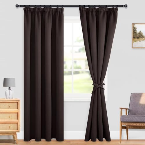 DWCN Blackout Curtains for Bedroom Thermal Insulated Room Darkening Pencil Pleat Window Curtains for Living Room 46 x 90 inch Length, Brown, 2 Panels