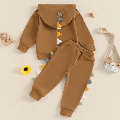 Bufarromio Little Kid Baby Boys Dinosaur Outfits Long Sleeve Serrated Hoodie Elastic Waist Sweatpants Fall Winter 2pcs Clothes Set