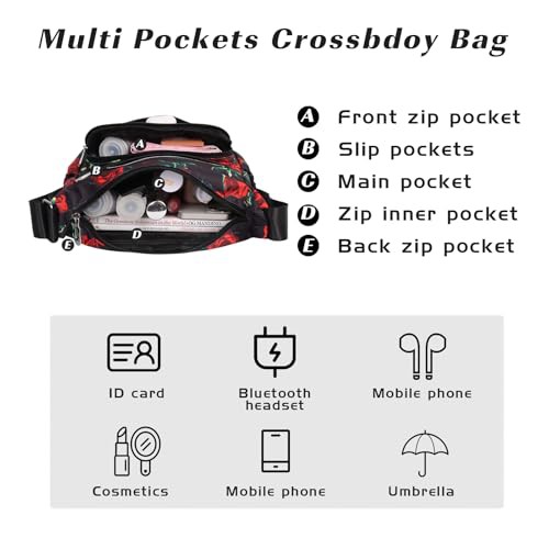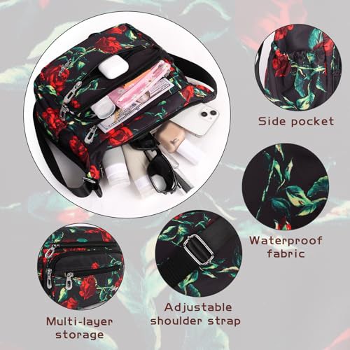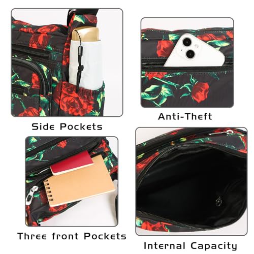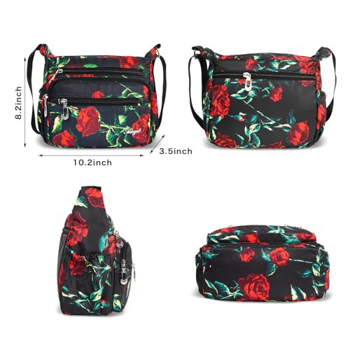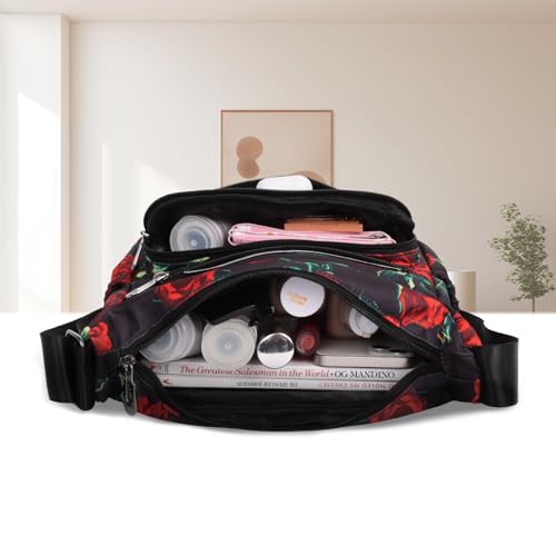 Jiusely Messenger Bag Women Nylon Crossbody Bags for Women Black Handbags for Women Multi Pocket Handbags for Women Handbags for Mother Crossbody Ladies Cross Body Handbags 5L