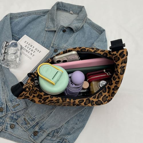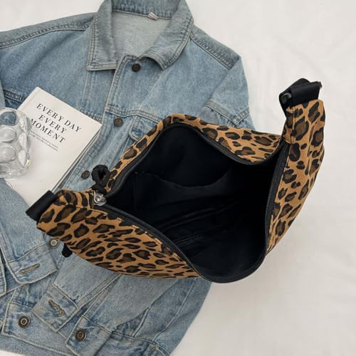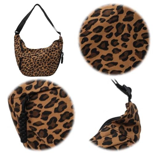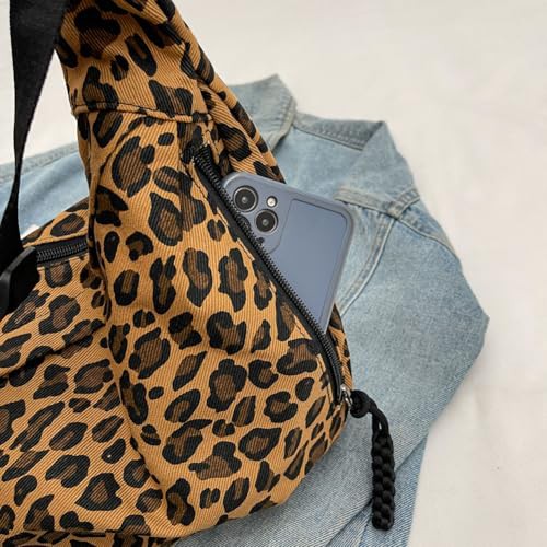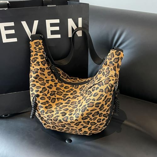 CRGANGZY Women Hobo Sling Bag Multi-pockets Leopard Print Fashion Shoulder Bag Large Capacity Crescent Crossbody Bag Adjustable Strap Simple Satchel Bag