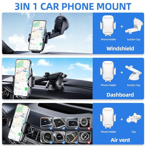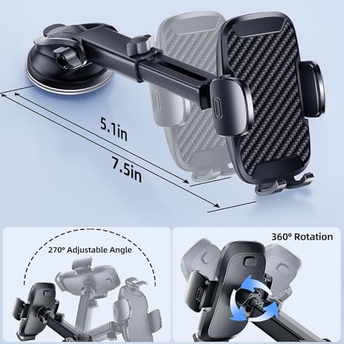 Vexloria Car Phone Holder, Car Phone Mount 360° Rotation, Upgraded Version with Strong Suction Power,Car Phone Cradle for Dashboard/Windscreen/Air Vent, Car Phone Holder for all 4.0''-7.0'' phones