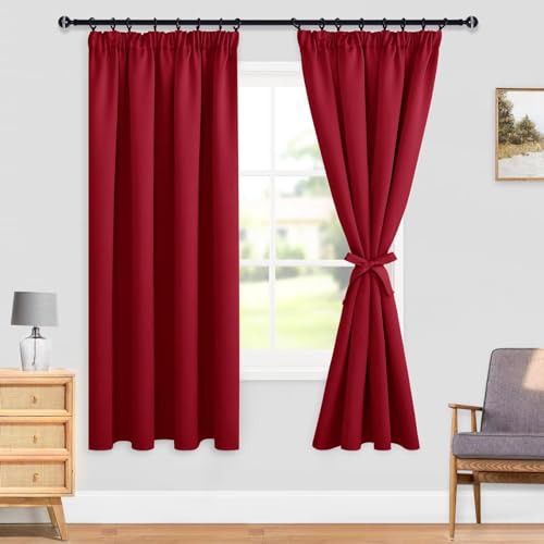 DWCN Blackout Curtains for Bedroom Thermal Insulated Curtain with Tiebacks Pencil Pleat Curtains for Living Room 46 x 72 inch Length, Red, 2 Panels