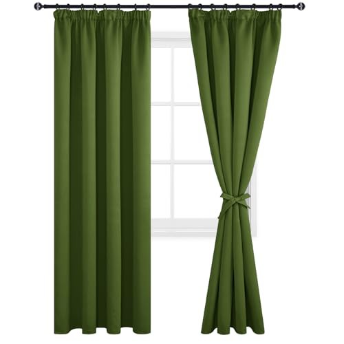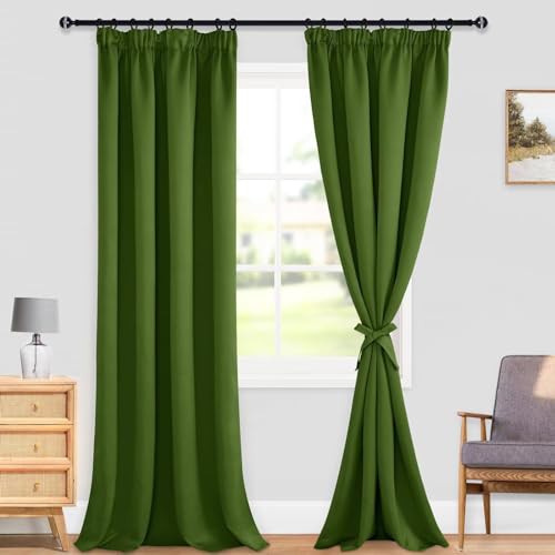 DWCN Blackout Curtains for Bedroom Thermal Insulated Room Darkening Pencil Pleat Window Curtains for Living Room 55 x 96 inch Length, Green, 2 Panels