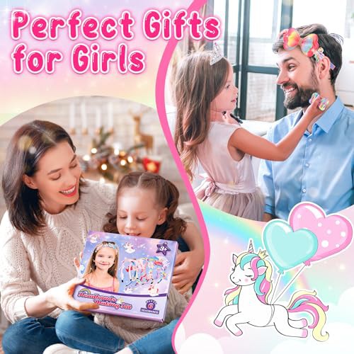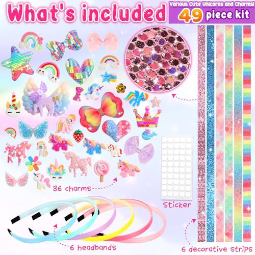 Pourbibi Unicorn Headband Making Kit for Girls Age 3+, Creative Craft Kits for Kids, DIY Hair Accessories & Hairbands - Girls Birthday Presents for Age 3 4 5 6 7 8 Year Old Girls Gifts Toys Set