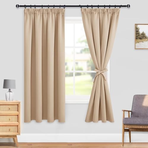 DWCN Blackout Curtains for Bedroom Thermal Insulated Room Darkening Pencil Pleat Window Curtains for Living Room 55 x 79 inch Length, Beige, 2 Panels
